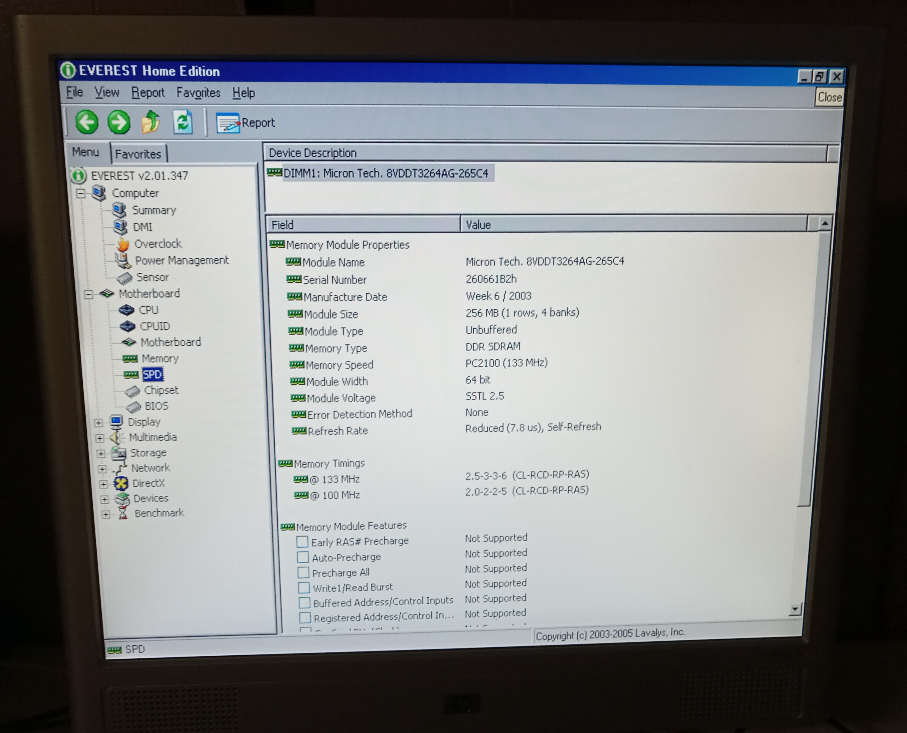 256 MB RAM PC2100 Micron Tech