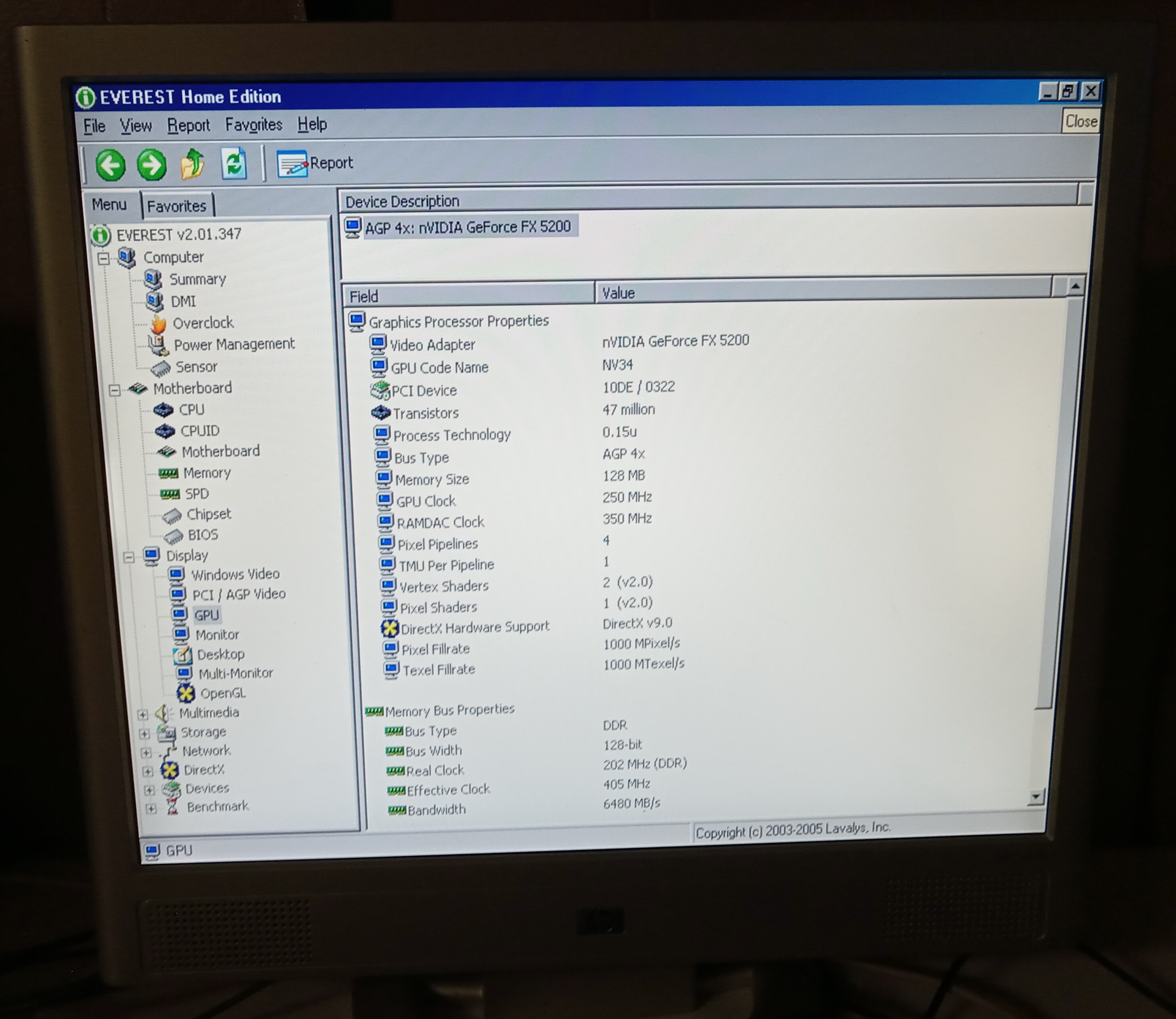 nVidia Geforce FX5200 128 MB DDR, 128-bit bus AGP