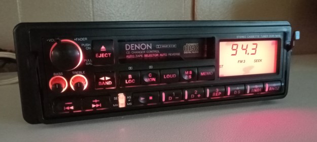 The Denon is my best sounding cassette head unit. You will cry like a freshly-spanked baby when you hear it. It is from 1989, and retailed for >$800. This unit works perfectly. New belt. Dolby B and C. The display has flaws, seen in the pictures. The DCR-7870 is a remarkable example of high-end mobile audio thirty-five years removed.