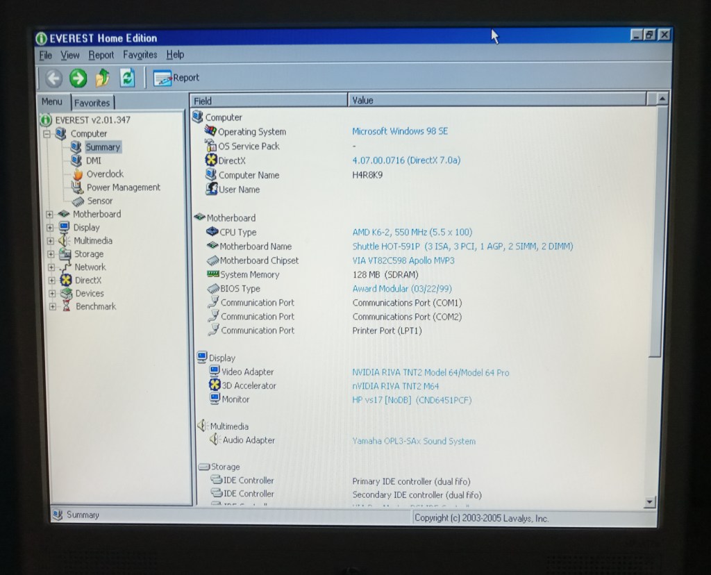 Windows 98 SE/DirectX 7.0a