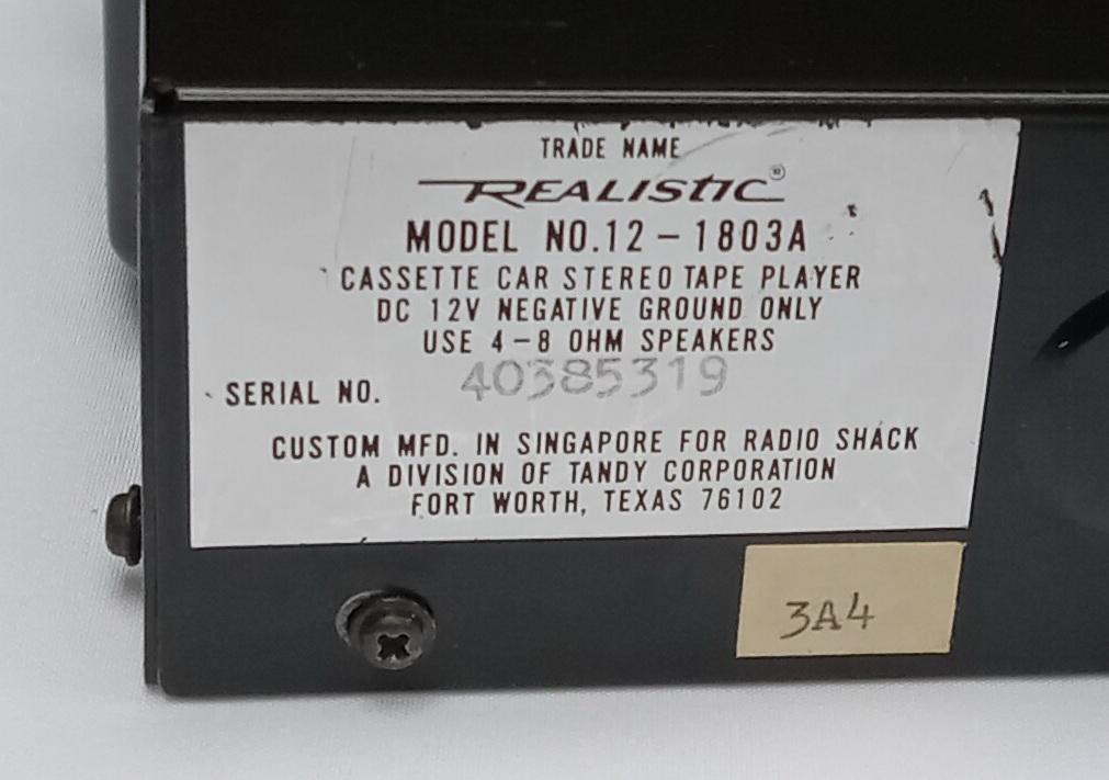 Realistic Stereo Car Cassette Under Dash No.12-1803A