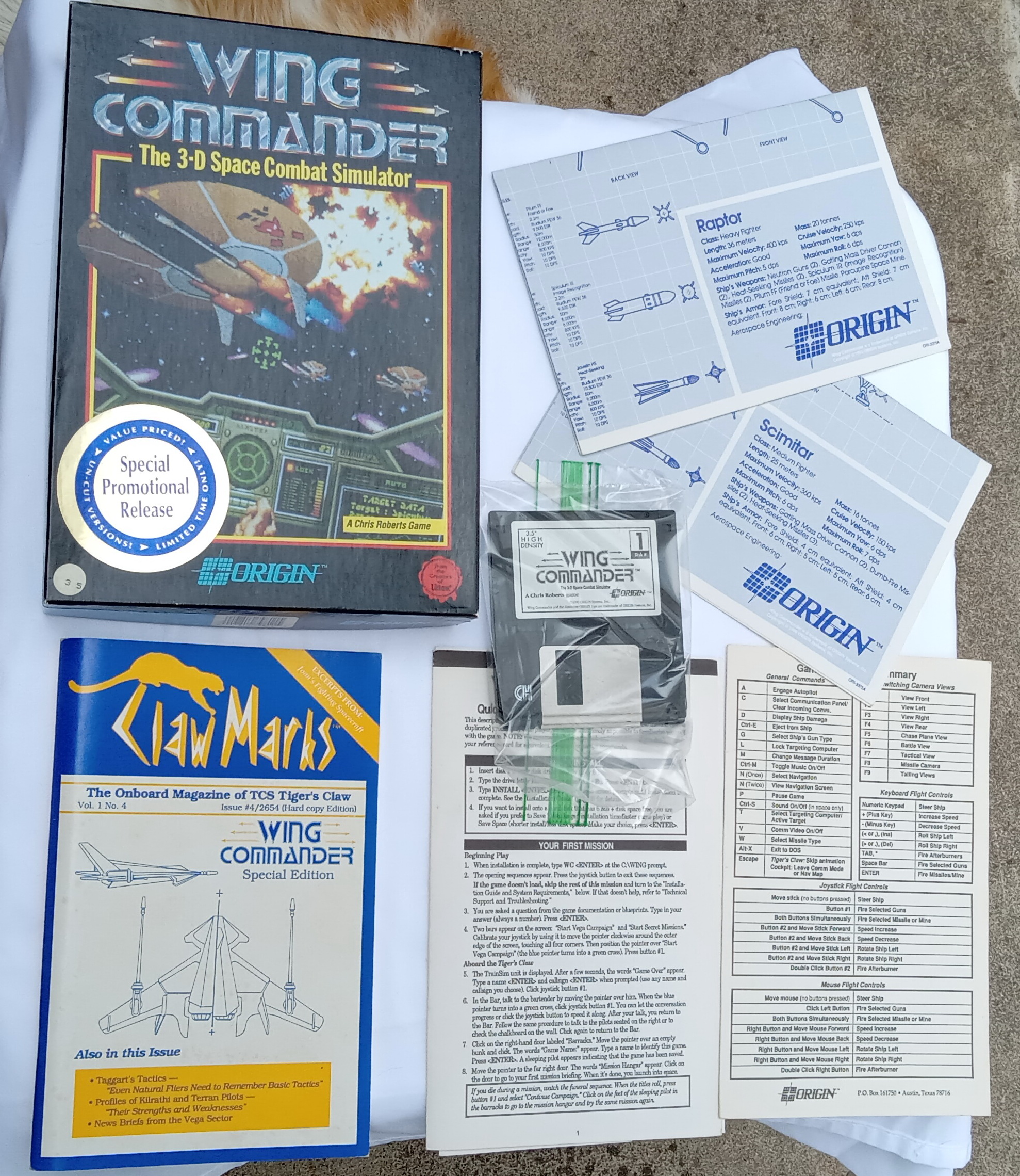This set is in fine condition, though the Secret Missions boxes show wear. Wing Commander is on 3.5″ disks, and Secret Missions are both 5.25″. All disks and documentation included.